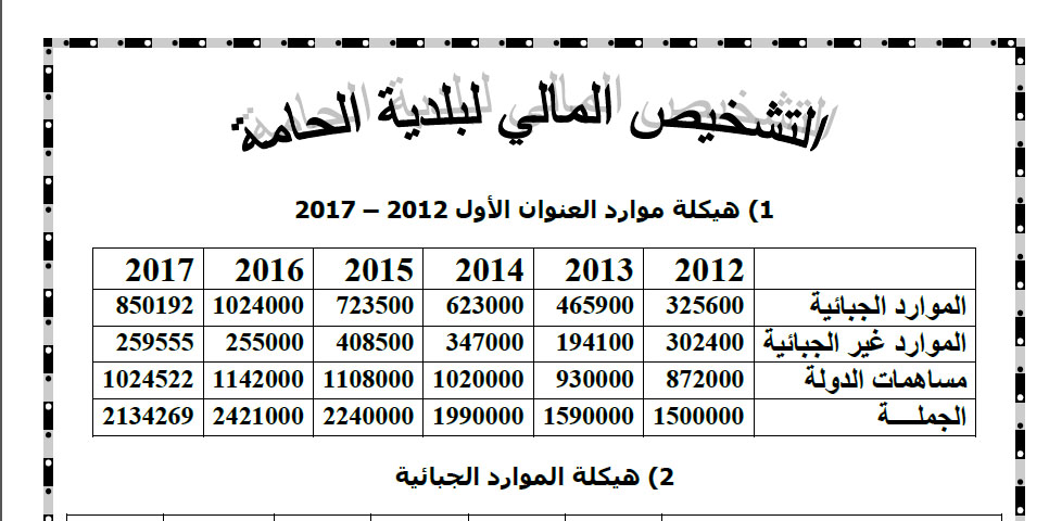 التشخيص المالي لبلدية الحامة – نوفمبر 2017